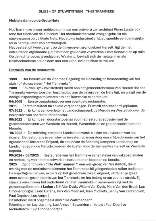 In opdracht van de gemeenten Herselt en Westerlo coördineerde Stichting Kempens Landschap de restauratie van dit bijzondere stukje industrieel erfgoed. Van september 2024 tot augustus 2025 werd het Trammeke in het atelier van vakspecialisten gerestaureerd. Op locatie werden het metselwerk en de natuurstenen afwerkingslaag aangepakt.